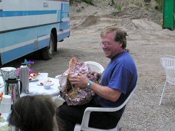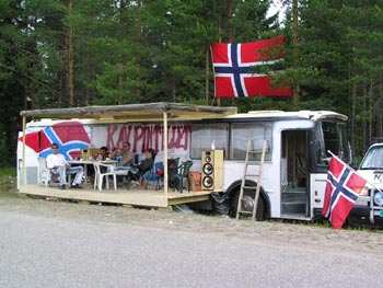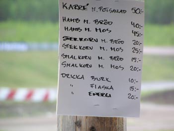 ![]() Andreas hälsar gomorron. ![]() Annica och jag hade sovmorron eftersom det blev så sent i natt. Men vid 11-tiden strosade vi bort till vår fina grillkiosk.. ![]() Här var det lugnt än så länge. ![]() Men inte hos våra grannar. Här var det full fart hela helgen kan jag säga. ![]() Tillbaka till grusgropen. Maten hade kommit. ![]() Vad ska hon ut och ställa till med nu då? Ser ju livsfarligt ut. ![]() Göran fyllde år idag. Så det blev kaffe ![]() och mumsig tårta. ![]() Återigen nere i kiosken. Vi förbereder för våra första gäster. ![]() Det kommer inget. Kläm lite hårdare. ![]() Vår fusklapp med priserna. ![]() Bakom kiosken håller grönsakerna till. ![]() På eftermiddagen var det Crosskarttävlingar. ![]() Det var kul att kolla på. ![]() Det gjorde inget att det började regna. ![]() Hade man inget paraply så kunde man alltid få hålla oss sällskap. ![]() Men snart tittade solen fram igen och kunderna va glada. |