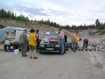 ![]() Bäst att tassa försiktigt när dom snarkar som bäst, men Annica och jag måste göra i ordning oss för att gå ner till grillen. ![]() Å milda matilda va folk det var redan. ![]() Det var full fart vid grillen. ![]() Allt gick åt i en rasande fart och ungarna fich rulla in massor av knivar och gafflar i servetter. ![]() Idag var det ju finaldag och säkert jättespännande om man bara visste vem man skulle heja på. Det var lite svårt att hänga med i svängarna. ![]() Efter att vi plockat ihop kiosken för dagen så kom det roligaste. Hur mycket pengar hade vi lyckats sälja för? Kom inte ihåg exakta summan, men jag tror det var 98756.50!!! Jag tror inte vi gjorde Finnskoga MK besvikna. ![]() Så var det ju all mat som blivit över. Det måste vi dela upp. ![]() Grillkryddan var väldigt mumsig och den ville alla ha en påse av. ![]() Äntligen var allt ihopplockat och utdelat. Vi kunde sätta oss ner och utvärdera helgen. Jag tror alla var överens om att ställa upp igen nästa år. Slit och släp och trötta fötter, men grymt kul. |