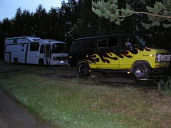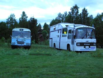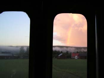 ![]() Har hämtat bussen i Skattkärr och är äntligen på väg till Höljes. Åker därifrån tillsammans med Månssons. Senare möter vi upp Ola och Ann-Sofie. ![]() Vädret skiftade minst sagt. Från sol till lite lite grått och sen till ![]() regn och dimma. ![]() Jag såg den största regnbågen i hela mitt liv. Men den ser ju inte så speciell ut på bilden precis ![]() Nu tror jag bestämt att jag börjar närma mig Värmlandsporten. ![]() Där träffade jag på Roine. Meningen var att jag skulle vänta in dom andra här som stannat på en rastplats tidigare. ![]() Men Roine bjöd på kaffe. Denna bil känner vi ju igen från hemsidan. Tyvärr var inte Tanja hemma så henne hoppas jag få träffa på nästa vända upp. ![]() En bit ifrån stod denna buss. Och jag undrar om inte Roine är lite sugen på att fixa den färdig. ![]() Efter ett par koppar kaffe och babbel for jag vidare dom sista milen. Några var fortfarande vakna och jag fick en öl. ![]() Meningen var att det skulle stekas några ägg oxå, men gasolen tog slut och den nya tuben passade inte. ![]() Efter ett par timmar vart det sovdags även för oss nattsuddare. |