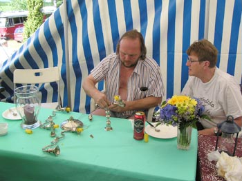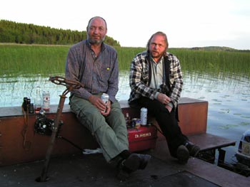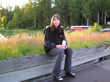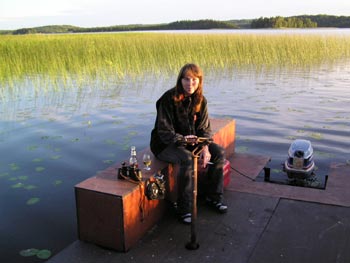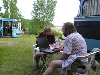 ![]() Midsommar utan jordgubbstårta går inte för sig. ![]() Man ska inte vara så noga när man putsar kandelabern. I alla fall inte så noga att man plockar isär den. Kan bli problem att sätta ihop igen. Fick vi till det där till slut? ![]() Vi tog en sväng in till Säffle med Benny och Astrids buss. Terje körde. ![]() Hittade en bra Icaaffär där vi handlade mat. ![]() Snurrade runt och kollade lite här å där. På ett ställe hittade vi denna lilla roliga husbil. Sen körde jag tillbaka. ![]() Mitt i jordgubbslunchen ville Tommy visa några bilder. ![]() Terje och Benny hade en knep å knåp-stund. Benny, nybliven medlem i Husbussens Vänner vill ha upp sina nya dekaler. ![]() Alla var glada att solen var med oss idag. Så glada att några grenar sågades ner för att släppa fram ännu mera sol. ![]() Ganska somrig bild om jag får säga det själv. ![]() Näääj tråkmånsar. Inte titta på fotboll idag!!! ![]() Vi andra som inte ville se på TV fick titta på myggdans istället. Otroligt vilka "pelare" av mygg på andra sidan älven. ![]() Fina näckrosor fanns det oxå att beskåda. ![]() Här finns det en stor flotte. men då jag inte är så förtjust i att vara vare sig i eller på vatten så håller jag mig till bryggan. ![]() Men det är klart... om jag håller i mig i ratten så ska jag väl inte ramla i. ![]() Så hade jag ju Göte och Tommy med mig som kanske skulle rädda mig om jag ramlade i. ![]() Börje var lite blyg :-) ![]() Efterhand så upptäckte dom andra hur trevligt vi hade nere på flotten. Vi bestämde oss för att ta en tur ut på älven. ![]() Tommy styrde ut till "sjöss" ![]() Jag fick oxå testa. Kanske det gick lite vingligt, men ingen blev sjösjuk i alla fall. ![]() Mycket tjusig solnedgång ![]() Den här bron har man ju åkt ett antal gånger på väg till och från Årjäng. ![]() Efter nån halvtimme såg solnedgången ut så här. ![]() När vi kom tillbaka var fotbollen slut. En brasa tändes och här satt vi till sent på natta. ![]() Benny spelades på sina skedar. Otroligt vad duktig han är. |