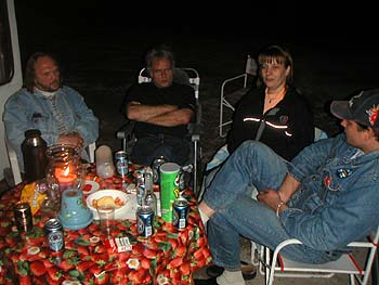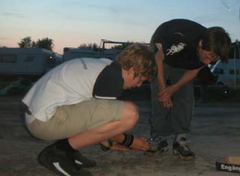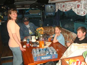 ![]() Bamsen kom och tog skydd i bilen när jag kom hem. Grannens katt satt och spanade på honom... genom fönstret. Hu så hemskt! ![]() Styr åter mot Skattkärr. Blir ett glasstopp i Hummelsta. ![]() Efter att ha packat in allt i bussen åkte vi in till Karlstad. ![]() I sällskap av Maggan och Tommy rullade vi så mot Grebbestad. ![]() I Ed väntade Göran och Alf. Dom hade startat tidigare. ![]() Vid 20.30 anlände vi till Grebbestad. ![]() Full fart med ett rejält långbord mellan husbilsraderna. ![]() Någon halvtimme efter oss kom Familjen MoJ. Att dom var så sena berodde på att en viss J fått för sig att dom skulle till Fjällbacka och inte till Grebbestad. Obs! Det finns tre J i familjen. ![]() Visst 17 har vi väl packat in ett korvpaket och några köttbullar? Jo det är där någonstans. ![]() Tog inte lång stund förrän Jerry satt och pillade med dom fem komradioapparaterna jag hade med mig. ![]() Alla bilar och bussar fick varsin engångsgrill i välkomstpresent. Det passade bra, för ungarna var hungriga. Danne och Grim fixade den biten galant. ![]() Sen blev ungarna trötta och gick och la sig. Men vi var sååå pratsugna. Tror Jerry berättar om någon cool Berg o dalbanetur han gjort. ![]() Men det ser inte ut som att dom andra tror på att Jerry vågar åka såna hiskliga saker. Mycket babbel hann vi med för vi gick nog inte i säng förrän vid 3-tida. Sist som vanligt tror jag bestämt. |
