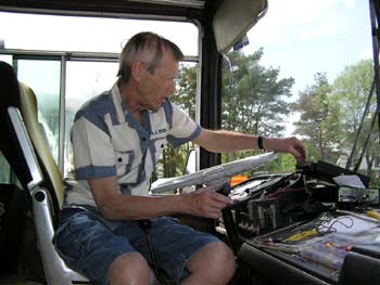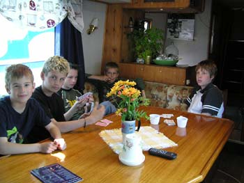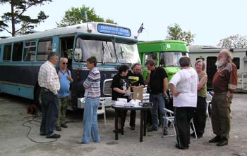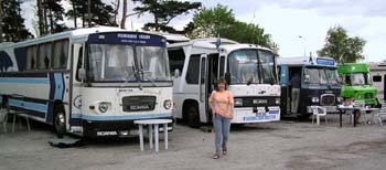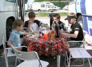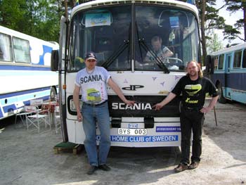 ![]() Hittade på Fam. Kleinschnittger och killarna följde med till vår buss och spelade kort. ![]() Sen vart det dags för mat. Inte varje dag man sitter mellan två bussar och käkar makaroner. ![]() Maria är inte heller någon klippa på det där med att mäta upp rätt mängd pasta. Hon hällde i hela paketet (1kg) som fyllde upp 5-literskastrullen till bredden.. När vi alla 7 personer hade ätit och var mätta, var det drygt halva kastrullen kvar. Hallå! Nån som vill ha en portion eler tre? ![]() Danne var sugen på att fiska. ![]() Lasse kom över och kikade på mina komradioapparater. Det var nog nåt knasigt med allihopa. Var det inte mickarna det var fel på, så var det högtalarna. ![]() Tom(my) & Jerry ställde upp på en modevisning á la Scania. Aja aja, inte pilla på mitt Scaniamärke. ![]() Jag och Maria gick en sväng och kollade in alla bilarna som fyllde upp hela fotbollsplanen. ![]() Många glada folk hittade vi mellan bilarna. ![]() Tommy visade en del "Bra och ha prylar". Typ larm och så. |