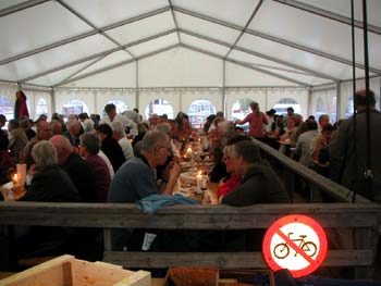 ![]() Kl. 19 var vi nere på Böstebar igen ![]() Nu skulle vi äta räkor. ![]() Det var otroligt gott och det blev nog 3-4 tallrikar. Den där smörjan till, var himla god. Det var vitlök i :-) ![]() Danne och Grim äter upp citronerna. Inte bara en utan flera.. ![]() Men Maria då, det är inget monster som ligger på fatet. Det är en helt ofarlig köttbit. ![]() Det var fullsatt i partytältet ![]() Efter middagen gick man bakom tältet och en trappa upp till baren. ![]() Hon fick slita den stackarn. ![]() Dessa herrar underhöll med bästa musiken. ![]() Vi höll till i rummet intill men det gick bra att dansa där oxå. ![]() Efter några timmar i baren gick vi tillbaka till bussarna och fortsatte kalasa där. ![]() Så här glad blev jag när Göran vart framme och dängt hickadrickan i fronten på Skräcken. Nä så illa var det inte. Hon hällde bara på nån deciliter, så det blev lagom kladdigt. ![]() Oj då. Får vi besök av polisen oxå. Maria och Jerry försöker se oskyldiga ut bakom vårt "vindskydd", fotbollsmålet. Men det var inte oss polisen skulle prata med. Det var bara en som fick skjuts "hem". Alltså, ingen från vårt sällskap. ![]() Alkotest är en bra grej, men kanske inte just nu. |