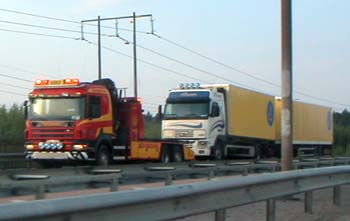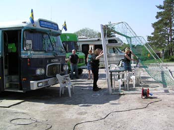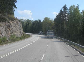 ![]() Idag var det mest till att plocka ihop och ställa i ordning. Fotbollsmålet måste bäras tillbaka. ![]() Solen värmde upp rejält mellan bussarna och det var skönt att va i skuggan en stund. ![]() Lite senare på dagen började vi rulla hemåt. Ganska snart kom vi till denna backe med 8% lutning och jag hade inte tillräckligt med fart. Puh! Jag trodde aldrig vi skulle komma upp. Vart nästan orolig att vi skulle börja rulla bakåt och hamna i Grebbestad igen. ![]() Resten av resan gick snabbt och smidigt. ![]() En röer å finer ![]() I Skattkärr hade Nicke dragit fram båten. Den är ju nästan lika stor som en buss. Packade ihop och tömde tankar och sen begav vi oss mot Stockholm. ![]() I Västerås hade Bengts fått problem. ![]() Och denna här var ju cool. Men det skulle varit roligare att se den på asfalten. ![]() Ett kort stopp i Hummelsta och Danne var så hääär glad för att han fått vara med och åka buss. |
