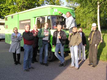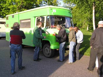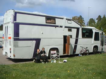 Annicas killar Tim och Linus kom förbi. Dom hade aldrig sett en så stooor buss.