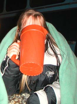 Maggan är bra på att blanda allehanda drinkar. Hon har även en viss förkärlek till gröna drinkar.. Då A hade en 1½ liters flaska med nåt grönt läskeblask i så kunde inte Maggisen hålla sig.