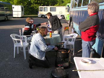 Det är inte klokt vad man blir hungrig på dessa träffar. Men Ola som är en hejare på Cognacsflamberade pannkakor, drar sig inte för att ta fram stekpannan.