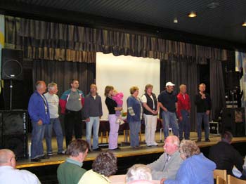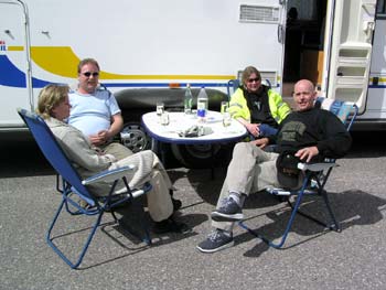 ![]() Vi är verkligen söta i våra sparkdräkter. Tänk att A oxå har en sån här "busspyjamas". Det måste ju betyda att hon oxå ska ha buss. ![]() Klockan 11 samlades ett gäng vid Skräcken för att prata komradio. Hans är en hejare på detta ämne. Här berättar han om olika antenner. ![]() Det var samanlagt 16 stycken här som lyssnade och tittade på apparaterna Lasse haft med sig. ![]() Det var två olika prisvärda modeller att välja på. ![]() Tommy köpte en av dom. ![]() Strax innan Kl.13 drog vi oss uppåt Parken. Nu är det dags för Motor Home Club of Swedens årsmöte. ![]() Måste köpa några lotter. Och vem vann på den första lotten som drogs tror ni?? Jo jag. (som aldrig vinner annars) ![]() Mötet var välbesökt. Mer eller mindre fullsatt. ![]() Pga oklarheter någonstans bland alla siffror och rapporter ![]() så blev det paus en timme. Satt i solen med Laila, Björn, Anki och Pennan i väntan på att det skulle komma igång igen. ![]() Men till slut så hade allt ordnat upp sig och delar av den nya styrelsen kunde presentera sig. ![]() På puben dansades Linedance ![]() Och tryckare ![]() Tommy beställde "radioaktiva" drinkar. ![]() Men vi tog det lite lugnare. Ingen dans i kväll.. ![]() Fast det var sent så var grabbarna uppspelta.. ![]() En nattakorv blev det i alla fall. Grillad denna gång. ![]() Sen var det dags att värma pyjamasen. Tänk att A blev kvar hela helgen. Vi som "bara" skulle partaja i torsdags. Tack för underbart roligt och trevligt sällskap. |